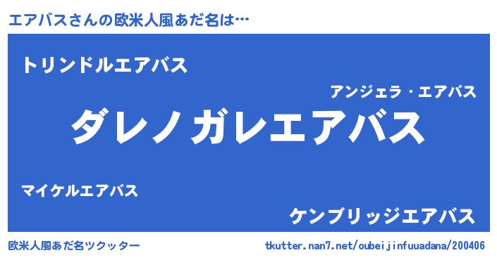| 男性向けラノベタイトル風あだ名 | 『この素晴らしい世界にエアバスを!』 |