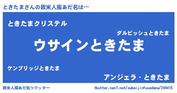 | ポケモン風あだ名 | 『ヒトキタマ』『トキタダネ』 |