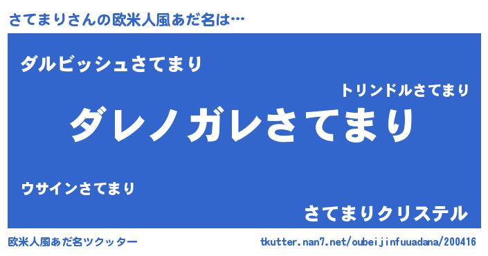 | 意味不明あだ名 | 『住所不定無職さてまり(95歳)』 |