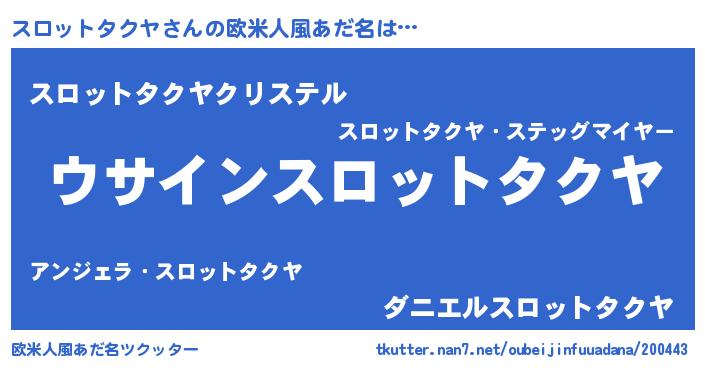 | ポケモン風あだ名 | 『ヒスロットタクヤ』『スロッダネ』 |