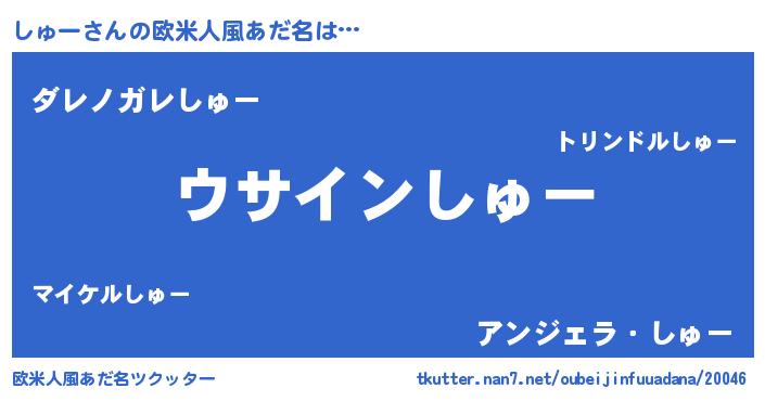 | 男性向けラノベタイトル風あだ名 | 『しゅーの嫁は女の子じゃないと思った?』 |