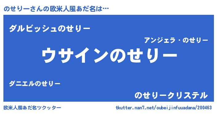 | 男性向けラノベタイトル風あだ名 | 『のせりーの嫁は女の子じゃないと思った?』 |