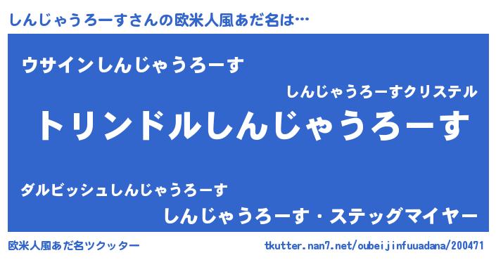 | 女子向けラノベタイトル風あだ名 | 『しんじゃうろーすの玉の輿計画!』 |