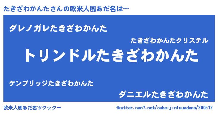 | ヒーロー風カッコイイあだ名 | 『仮面タキダー』『ネオタキザワカンタ』 |