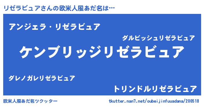 | 男性向けラノベタイトル風あだ名 | 『Re:リゼラビュアから始める異世界生活』 |