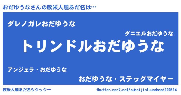 | 男性向けラノベタイトル風あだ名 | 『おだゆうな~年齢イコール彼女いない歴の魔法使い~』 |