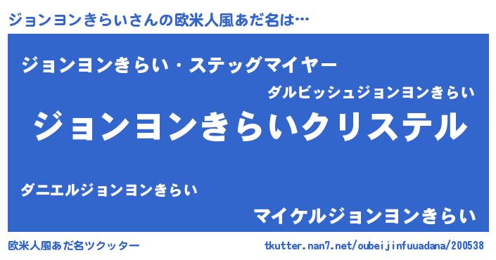| ファンタジー風あだ名 | 『エターナルジョンヨンキライー』 |