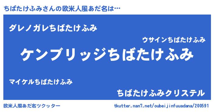 | 男性向けラノベタイトル風あだ名 | 『魔法科高校のちばたけふみ』 |