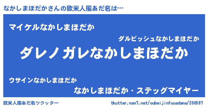 | 男性向けラノベタイトル風あだ名 | 『魔弾の王となかしまほだか』 |