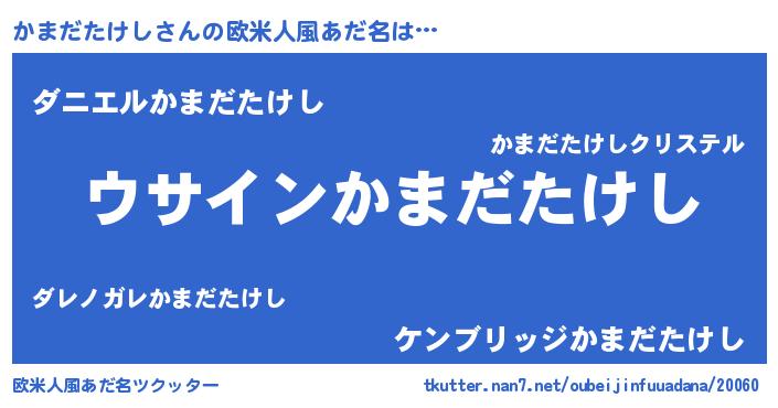| 意味不明あだ名 | 『とにかく怪しいかまだたけし』 |