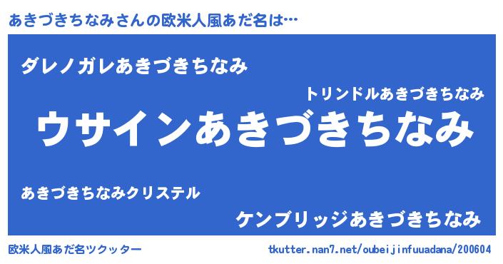 | 意味不明あだ名 | 『とにかく怪しいあきづきちなみ』 |