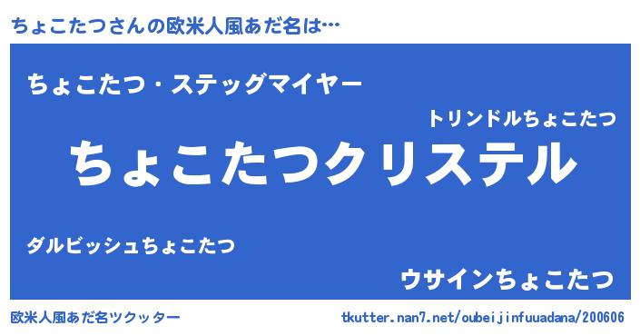 | ファンタジー風あだ名 | 『エターナルチョコタツー』 |
