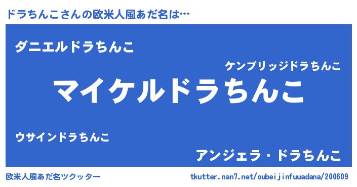 | 男性向けラノベタイトル風あだ名 | 『ドラちんこの憂鬱』 |