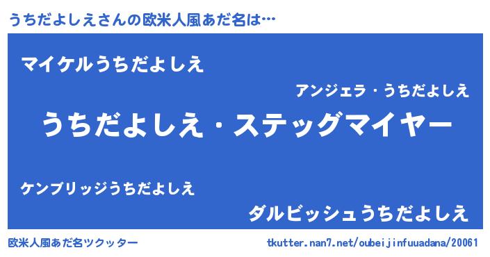 | 肩書あだ名 | 『うちだよしえ船長』『うちだよしえ社長』 |