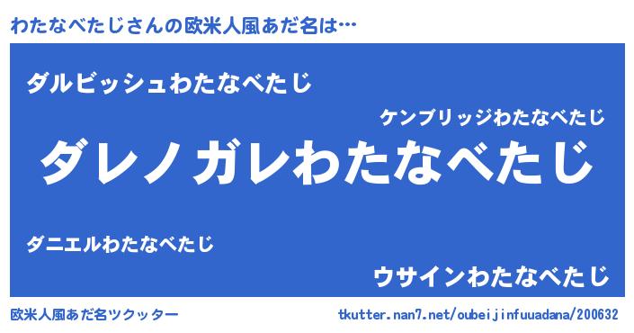 | 女子向けラノベタイトル風あだ名 | 『乙女ゲームの破滅フラグしかない悪役わたなべたじに転生してしまった…』 |