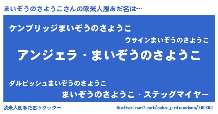 | 意味不明あだ名 | 『自称まいぞうのさようこ』 |