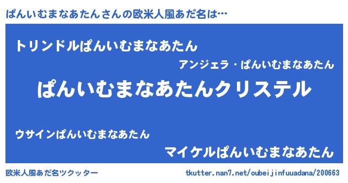 | ファンタジー風あだ名 | 『エターナルパンイムマナアタンー』 |