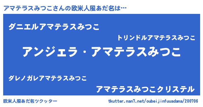 | 男性向けラノベタイトル風あだ名 | 『アマテラスみつこに滅ぼされるだけの簡単なお仕事です』 |