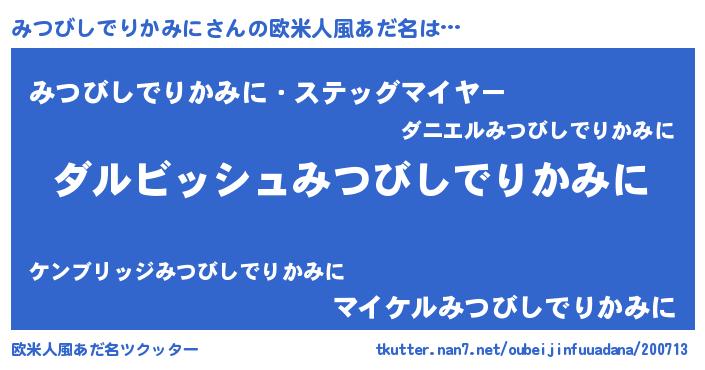| 意味不明あだ名 | 『永久保存みつびしでりかみに』 |