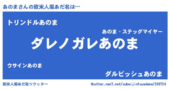 | 意味不明あだ名 | 『住所不定無職あのま(8歳)』 |