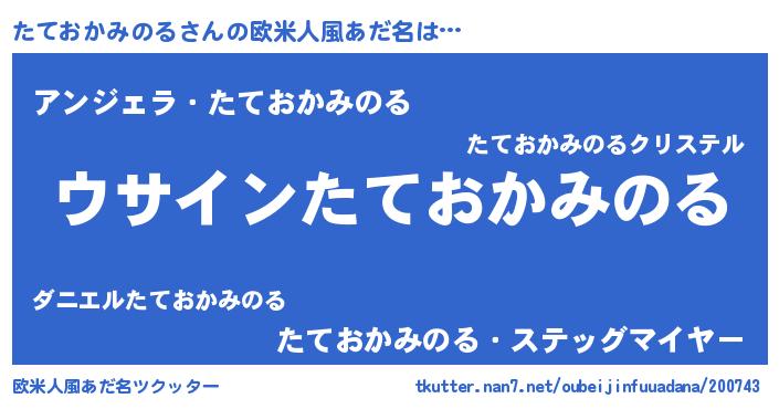 | 女子向けラノベタイトル風あだ名 | 『たておかみのる様がみてる』 |