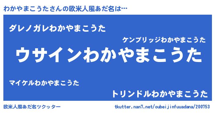 | 男性向けラノベタイトル風あだ名 | 『わかやまこうたの嫁は女の子じゃないと思った?』 |