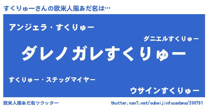 | 男性向けラノベタイトル風あだ名 | 『魔弾の王とすくりゅー』 |