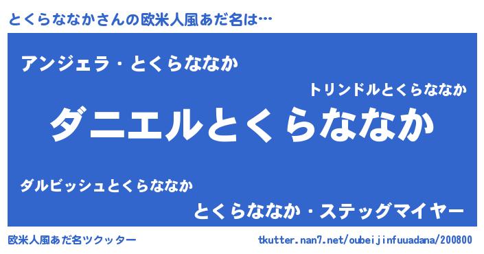 | ヘコむあだ名 | 『とくらななか(爆)』『豆乳』 |