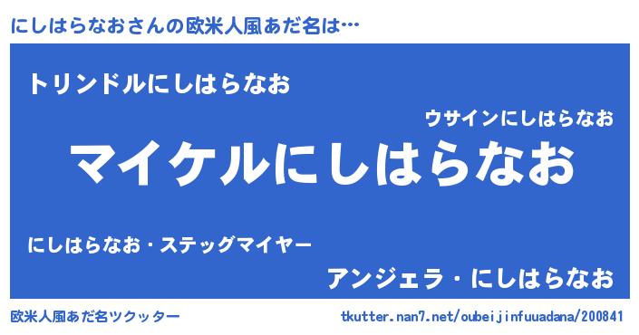 | 男性向けラノベタイトル風あだ名 | 『にしはらなおの憂鬱』 |