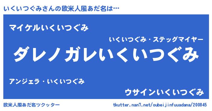 | 意味不明あだ名 | 『住所不定無職いくいつぐみ(7歳)』 |