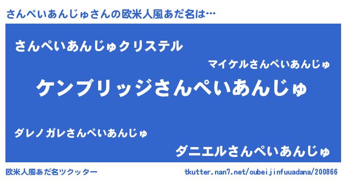 | 男性向けラノベタイトル風あだ名 | 『Re:さんぺいあんじゅから始める異世界生活』 |