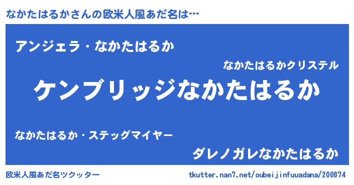 | 男性向けラノベタイトル風あだ名 | 『Re:なかたはるかから始める異世界生活』 |