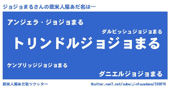 | 男性向けラノベタイトル風あだ名 | 『ジョジョまる~年齢イコール彼女いない歴の魔法使い~』 |