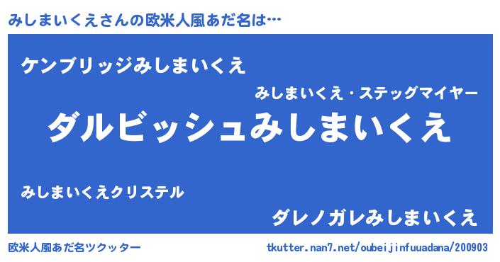 | 意味不明あだ名 | 『永久保存みしまいくえ』 |