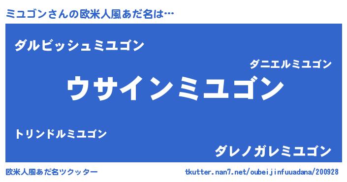 | 男性向けラノベタイトル風あだ名 | 『ミユゴンの嫁は女の子じゃないと思った?』 |