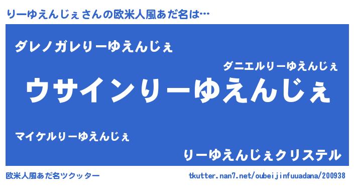 | 男性向けラノベタイトル風あだ名 | 『りーゆえんじぇの嫁は女の子じゃないと思った?』 |