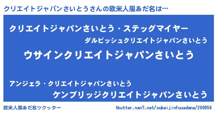 | 胡散臭い通販商品みたいなあだ名 | 『信頼と実績のサプリメント…その名も「クリエイトジャパンさいとう」』 |