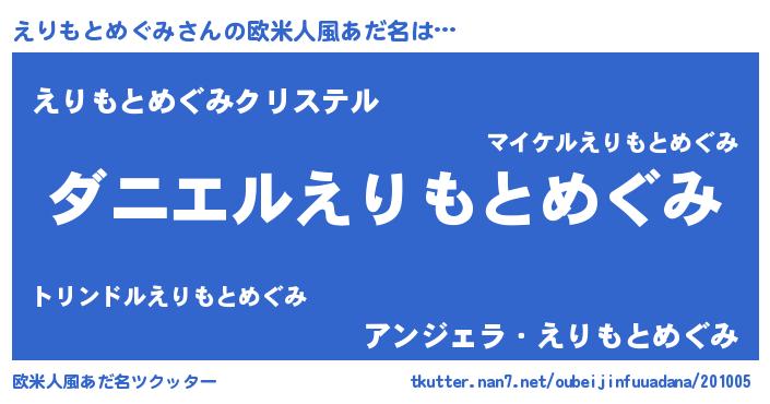 | 女子向けラノベタイトル風あだ名 | 『えりもとめぐみ恋絵巻』 |