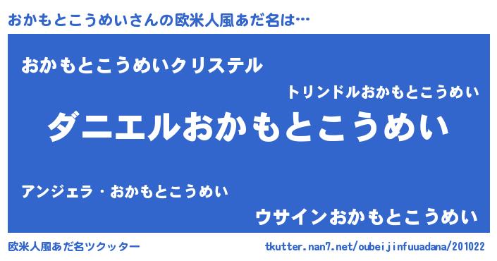 | 男性向けラノベタイトル風あだ名 | 『おまえをオタクにしてやるから、俺をおかもとこうめいにしてくれ! 』 |
