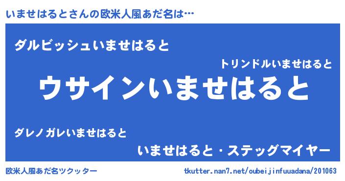 | 意味不明あだ名 | 『とにかく怪しいいませはると』 |