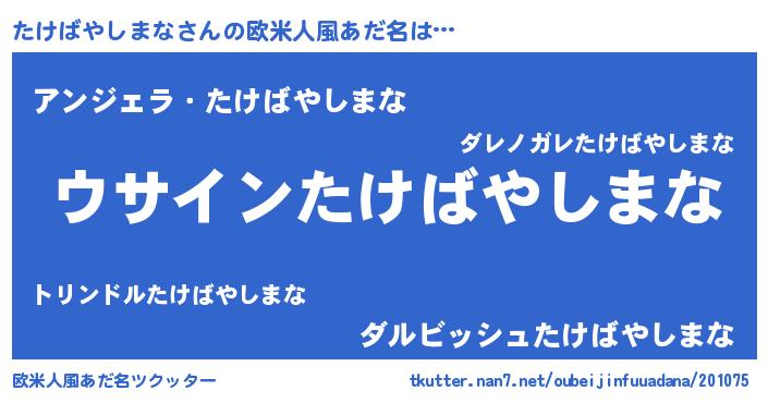 | 男性向けラノベタイトル風あだ名 | 『たけばやしまなの嫁は女の子じゃないと思った?』 |