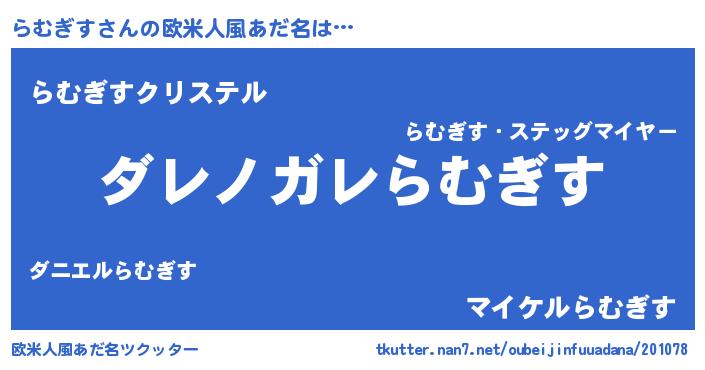 | ヒーロー風カッコイイあだ名 | 『仮面ラムダー』『ウルトラらむぎすマン』 |