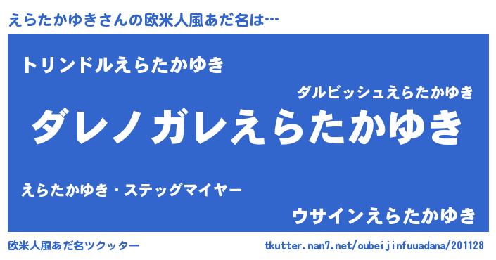 | 意味不明あだ名 | 『住所不定無職えらたかゆき(59歳)』 |