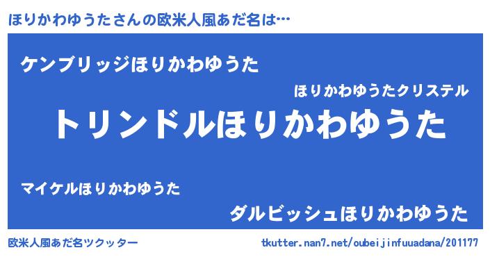 | ヘコむあだ名 | 『ほりかわゆうた(震え声)』『酢こんぶ』 |