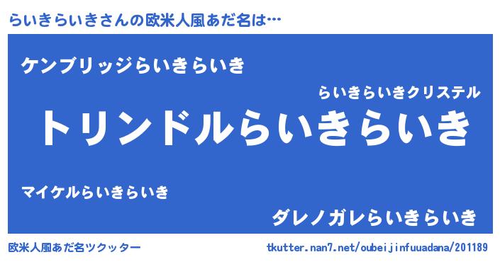 | 料理風あだ名 | 『らいきらいきごはん』 |