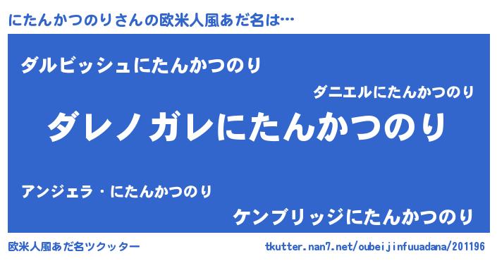 | 男性向けラノベタイトル風あだ名 | 『この素晴らしい世界ににたんかつのりを!』 |