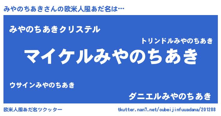 | 男性向けラノベタイトル風あだ名 | 『みやのちあきの憂鬱』 |