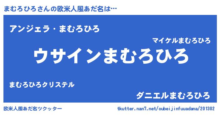 | 女子向けラノベタイトル風あだ名 | 『まむろひろの卵を拾いまして』 |