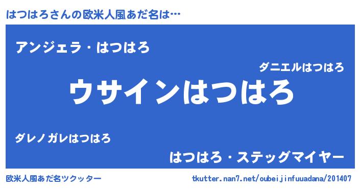 | 男性向けラノベタイトル風あだ名 | 『はつはろの嫁は女の子じゃないと思った?』 |