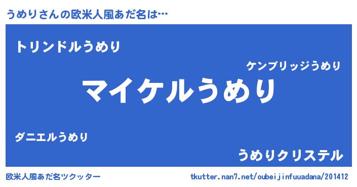 | ヒーロー風カッコイイあだ名 | 『スーパーウメリ』『ウルトラうめりマン』 |